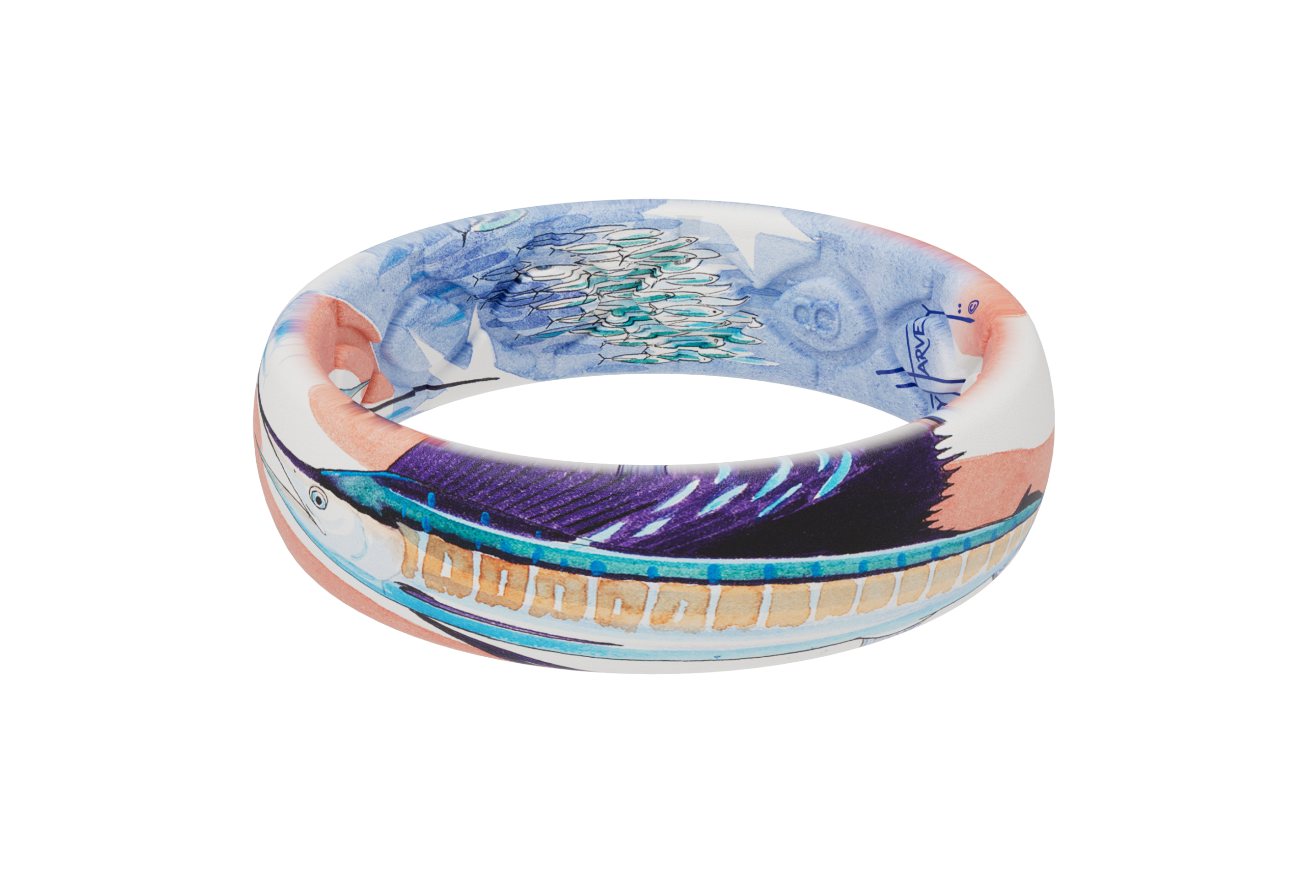 This red. white. and blue thin sailfish ring is flexible enough to move with you throughout the day. and comfortable enough to forget you have it on. Perfectly safe for reeling in that elusive sailfish.