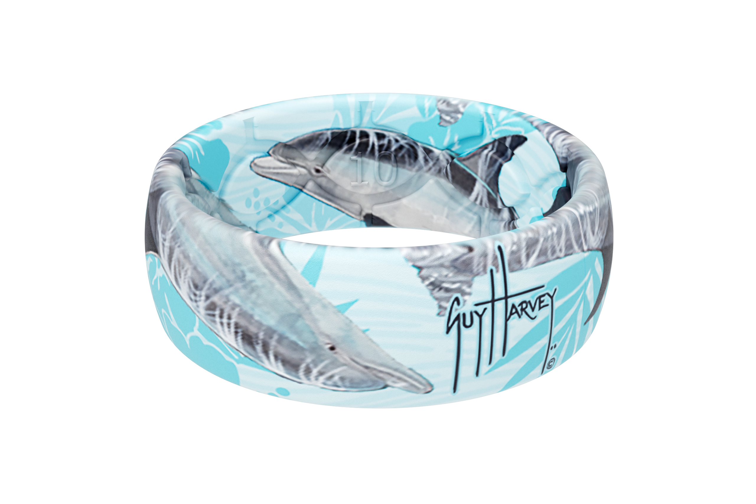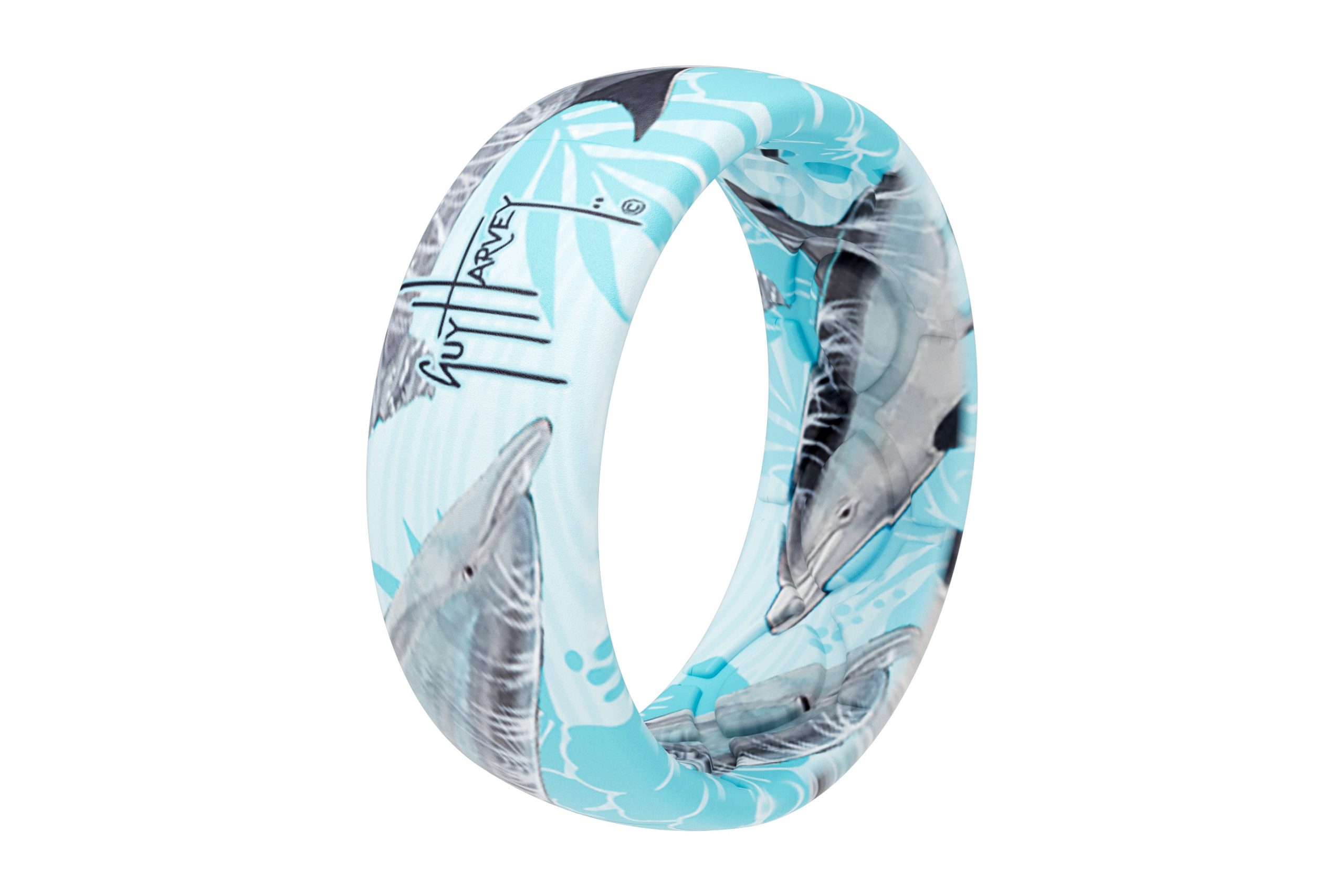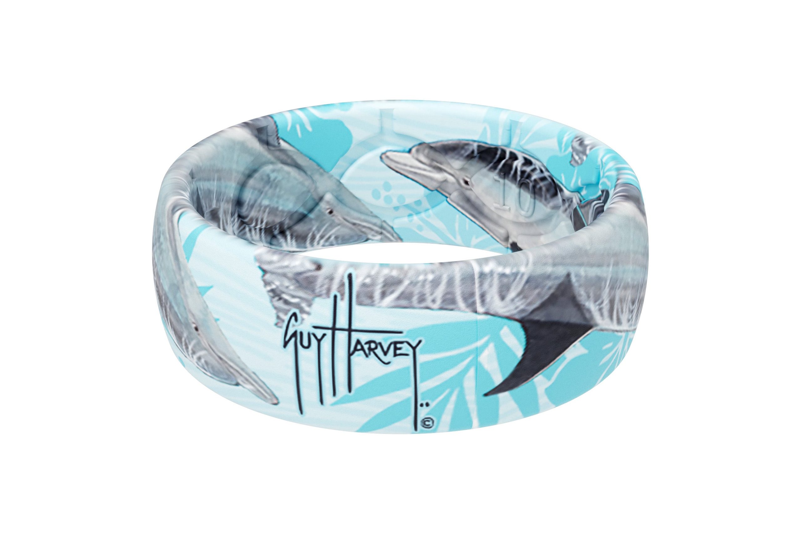 Book an afternoon swim with our Guy Harvey® Dolphin Thin Ring. This stunning ring features dolphins swimming beneath clear blue waters. Playful days at sea are on the horizon with this eye-catching. sea-inspired silicone ring.