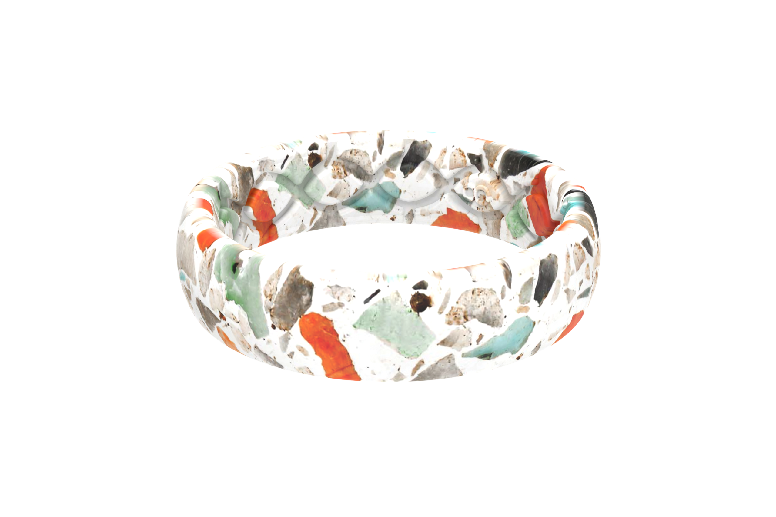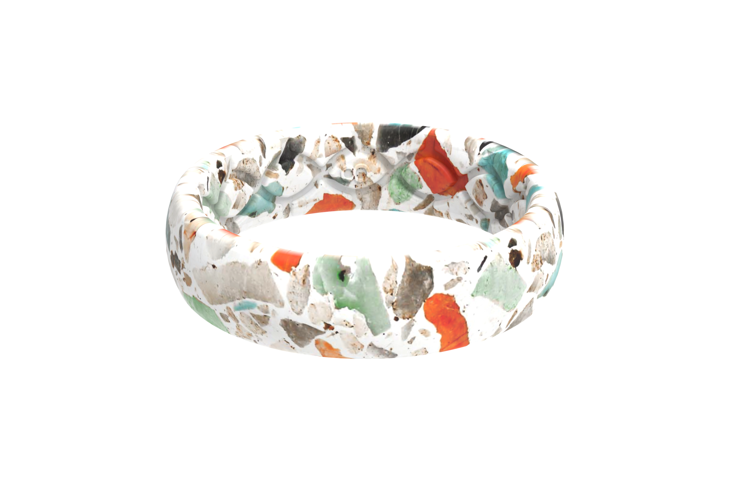 Feel the warm sand beneath your toes with our Sea Glass Aspire ring. Inspired by the colorful sea glass that speckles coastal beaches. this ring will have you dreaming of the coastline. Shades of sunset red. cool teal. and sandy mauve against a white backdrop make this the perfect everyday accessory.