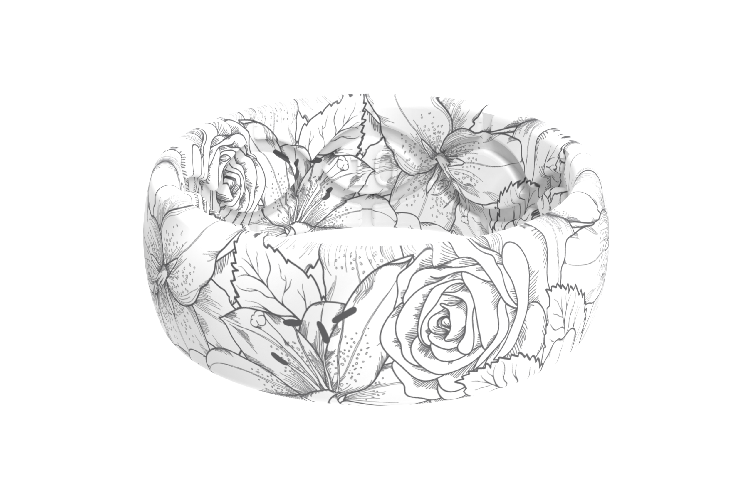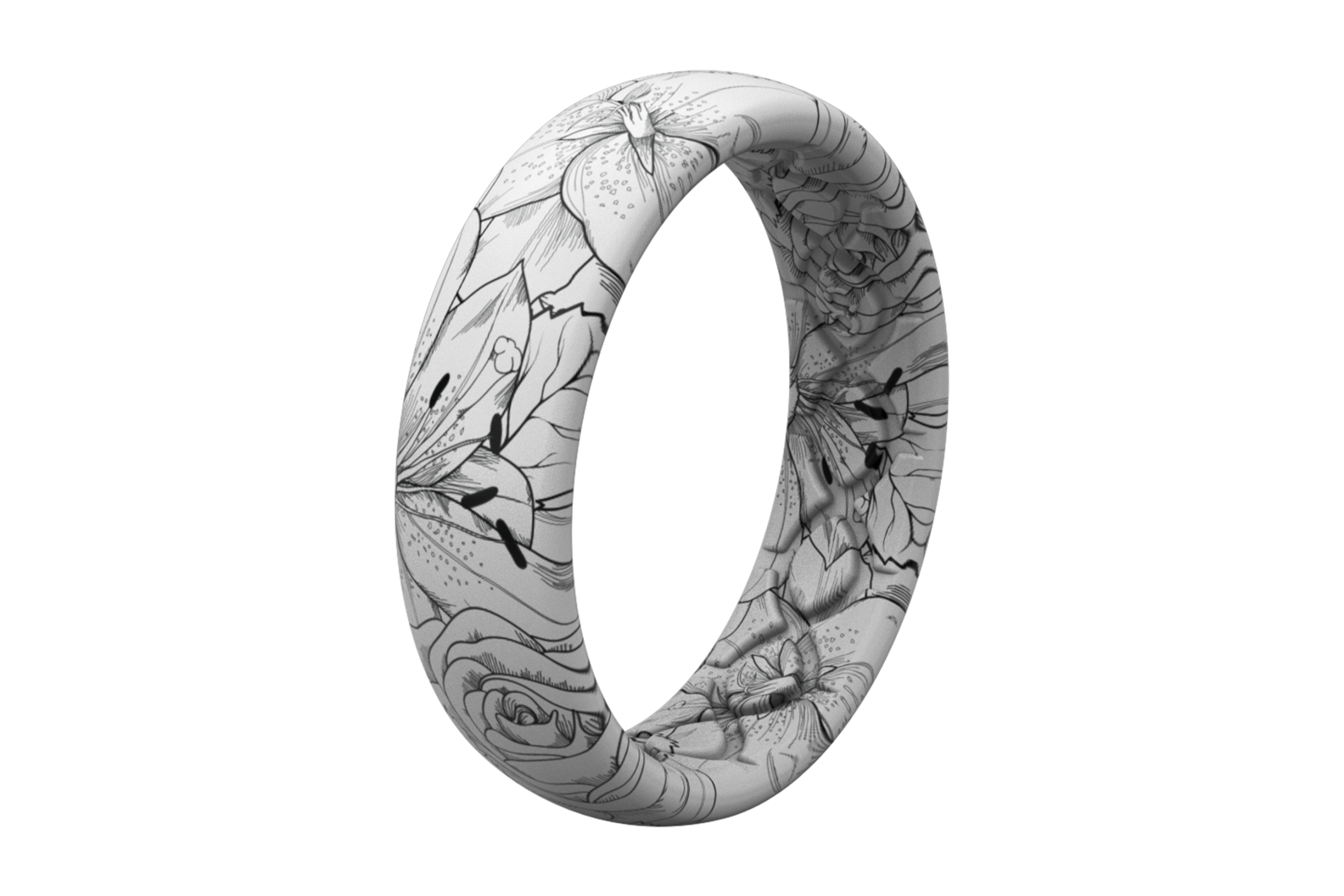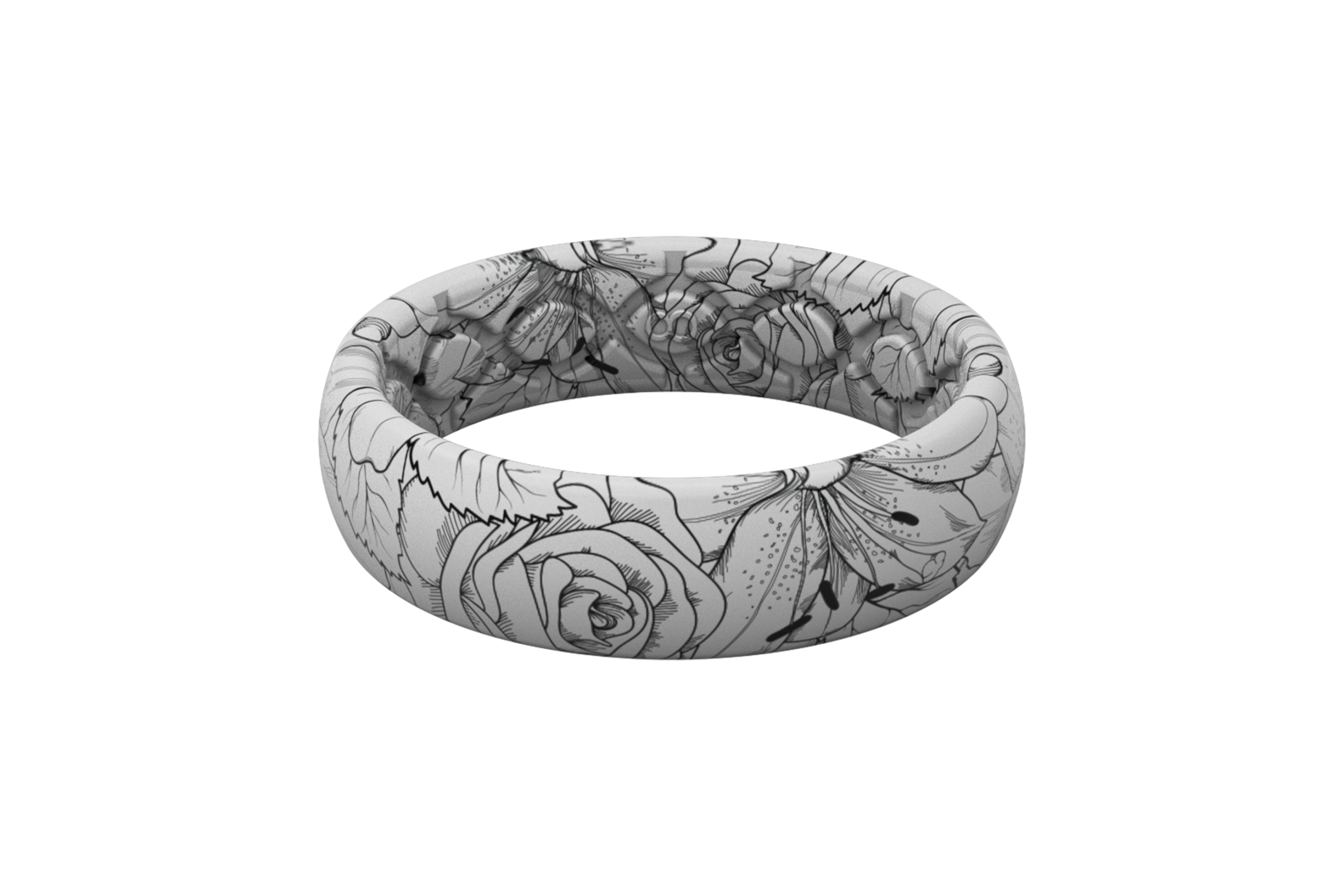Make a statement with your wedding band by wearing a Limited Edition Groove Aspire Ring. Our Aspire collection is our most creative collection yet. featuring bold patterns that are sure to get you and your ring noticed. Our subtle Winter Rose design keeps you looking great while taking on whatever life throws at you. Our one of a kind Groove technology is designed to allow breathability and comfort on an unmatched level. The high elastomer blend provides maximum flexibility that you can’t find anywhere else. This ring is perfect for women of all lifestyles looking to make a statement with their wedding band.